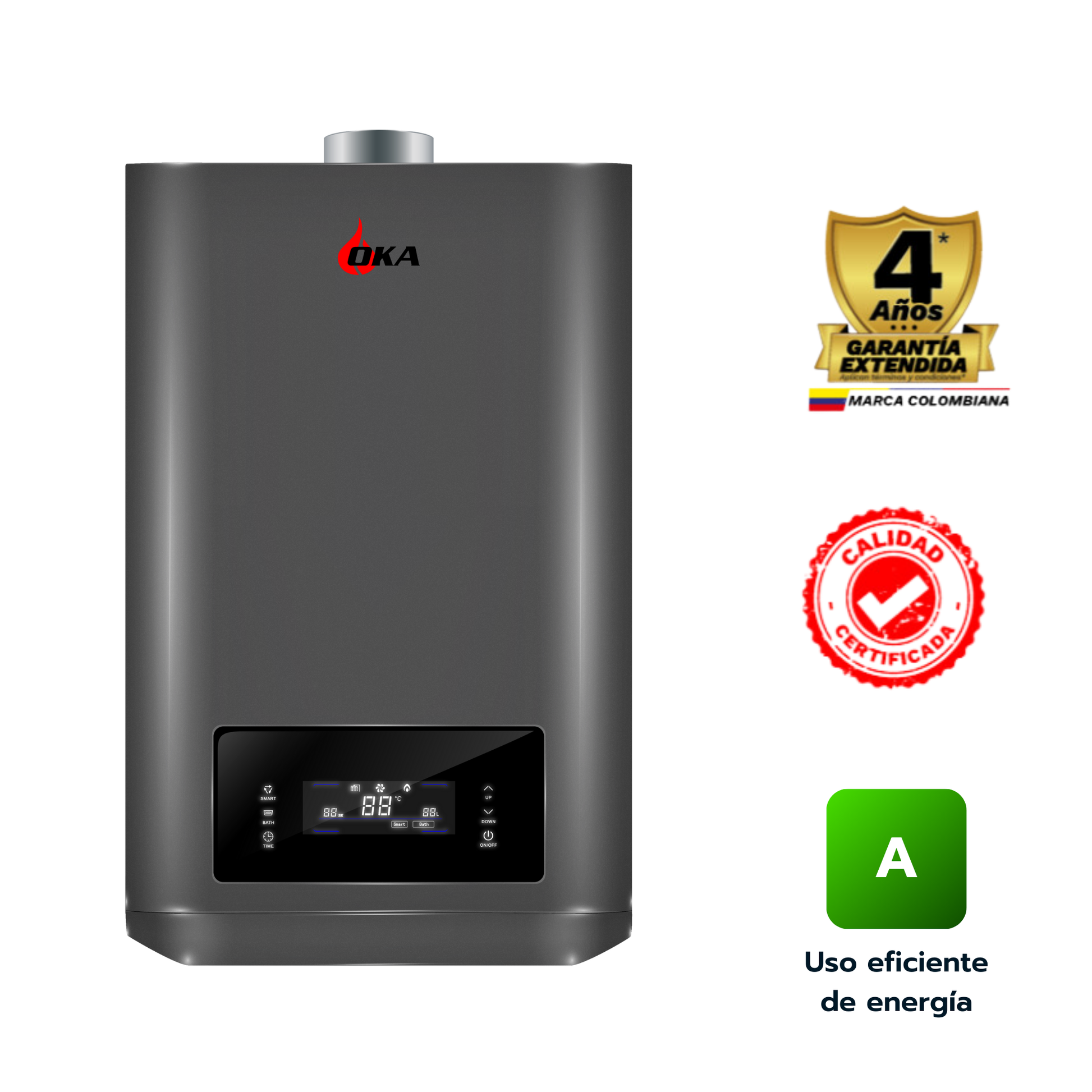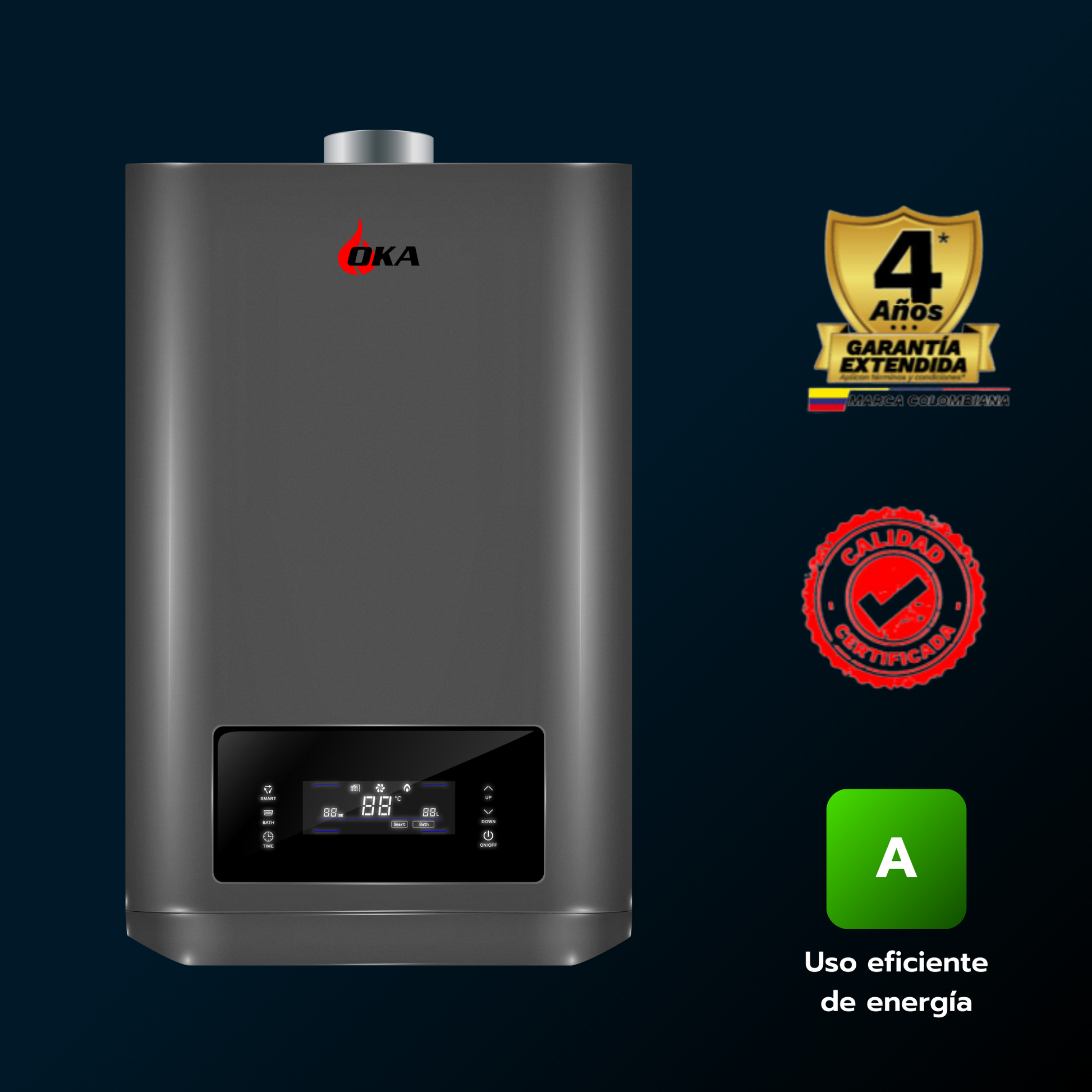 Disfruta máxima potencia y confort con el calentador Oka Samán de 30 litros tiro forzado, diseñado para hogares y proyectos que requieren un caudal superior y agua caliente en varios puntos a la vez. Su sistema automodulante mantiene la temperatura siempre estable, mientras que su pantalla digital y tecnología de seguridad garantizan una operación confiable y eficiente. Perfecto para familias numerosas o espacios con alta demanda diaria que buscan desempeño excepcional sin interrupciones.