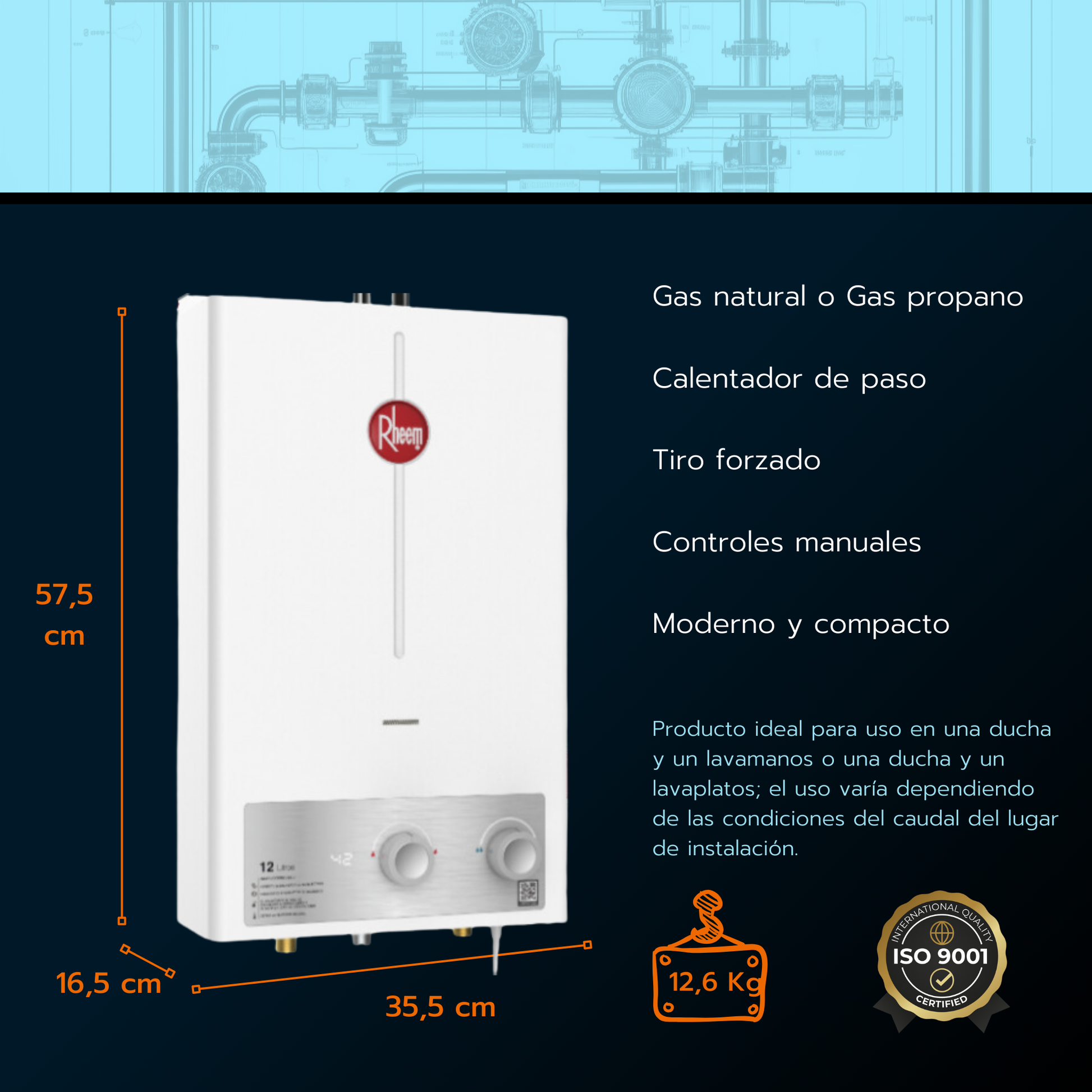 Calentador de paso 12 litros tiro forzado - Mecánico